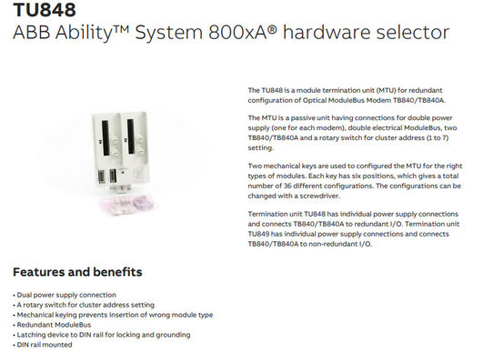 TU848 3BSE042558R1 ABB リデンドント TB840/TB840A,リデンドント I/O,ダブルパワー